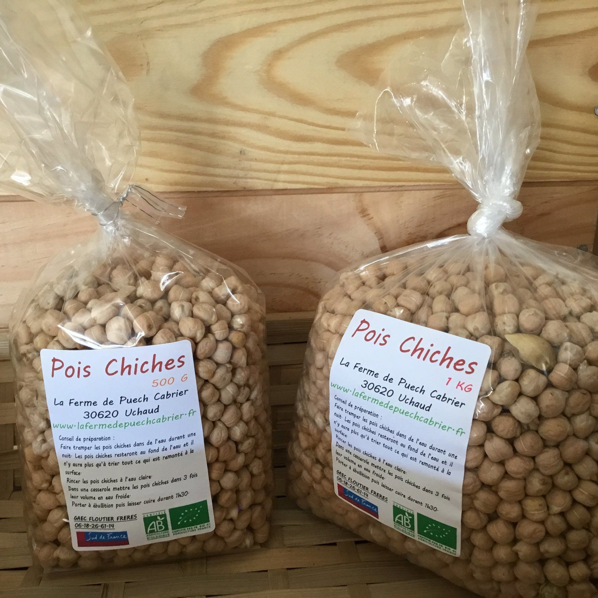 Pois chiches secs cultivés sur nos champs et moissonnés par nos soins.